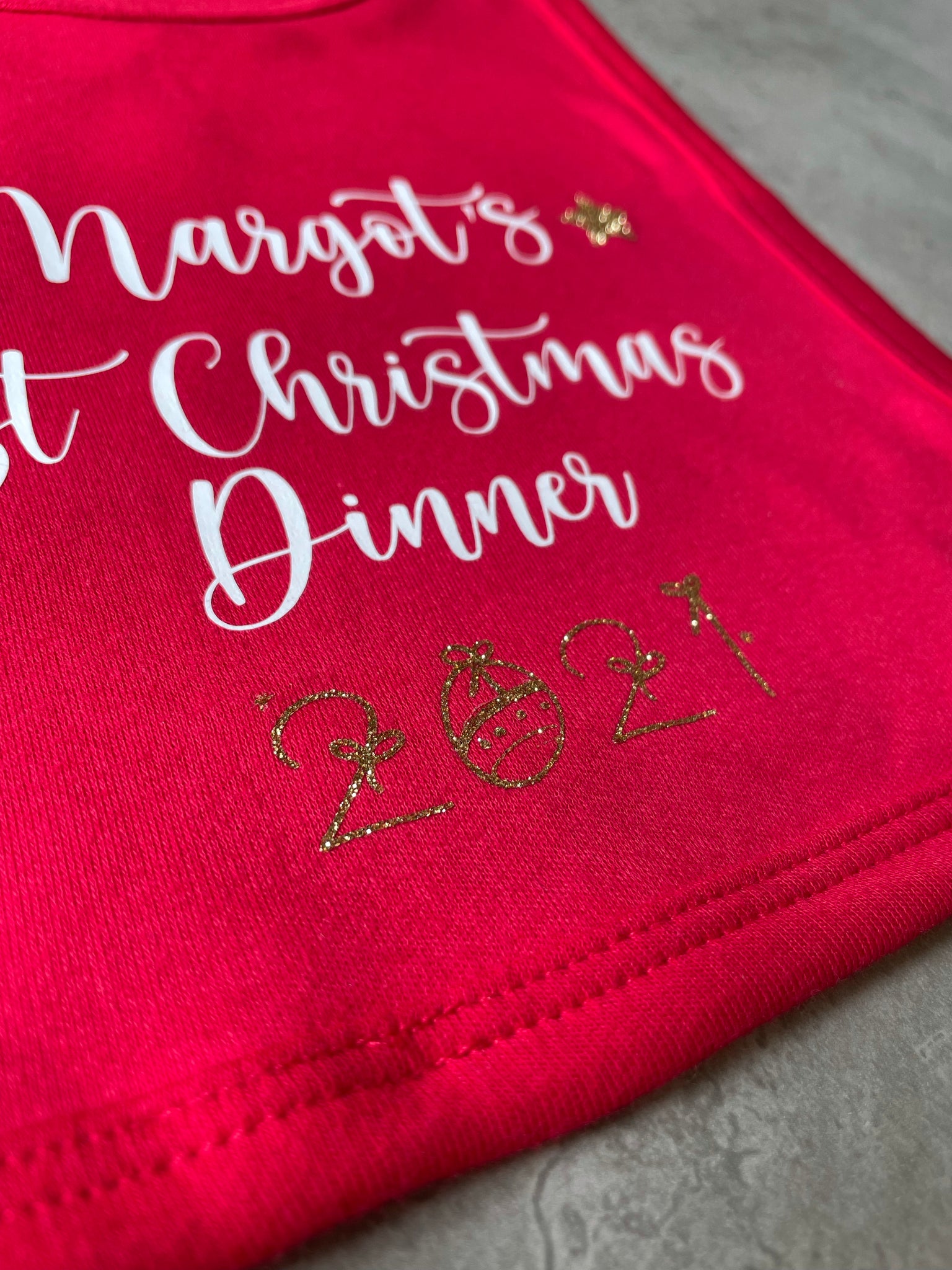 Personalised Christmas Dinner with 2021 in Gold glitter with 2 gold stars