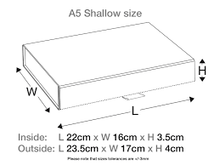 White A5 folding gift box with fixed grosgrain ribbon ties, make the perfect keepsake memory box or presentation gift hamper box.