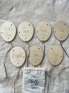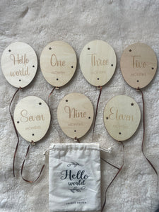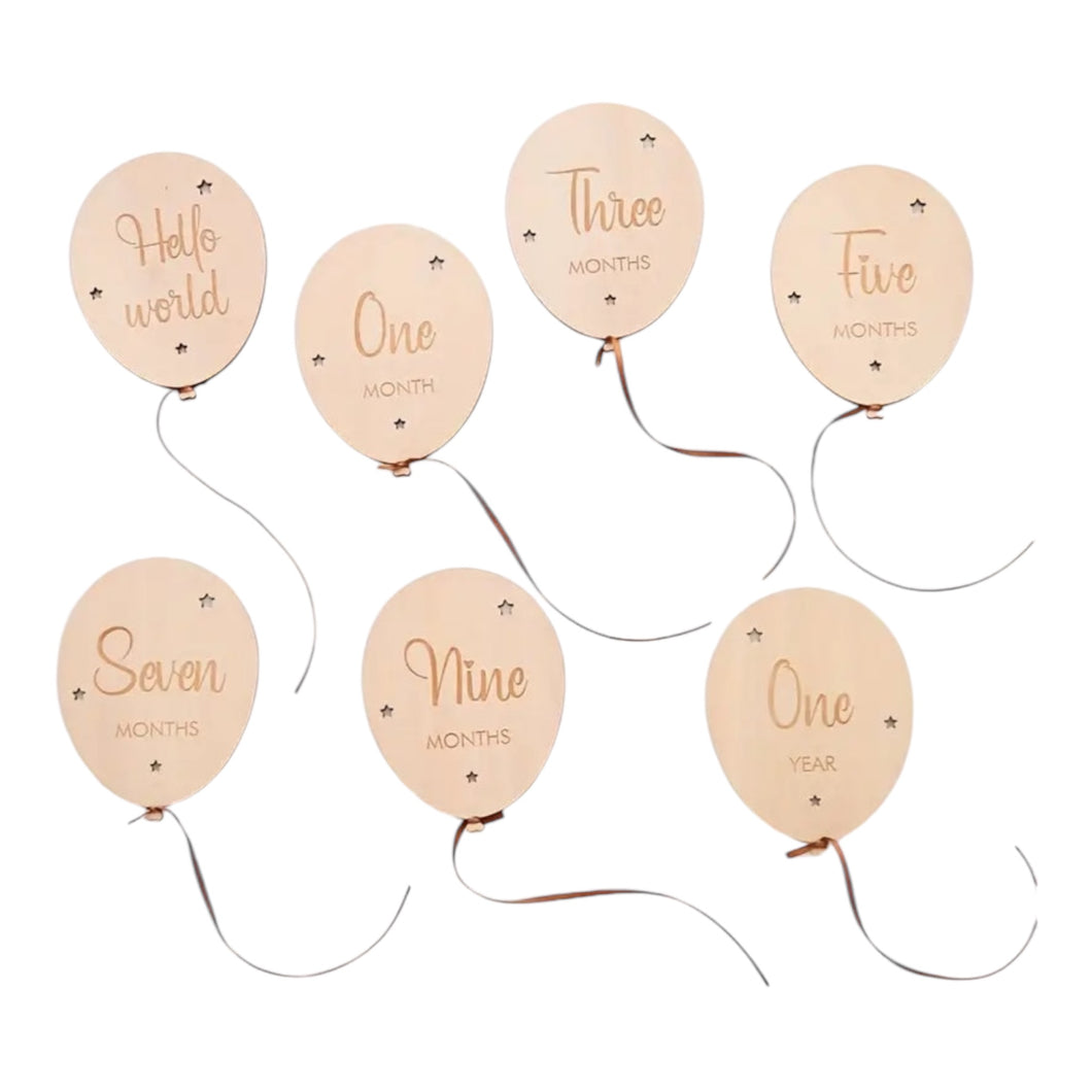 A gorgeous set of 12 x 9 cm plywood Milestone balloons