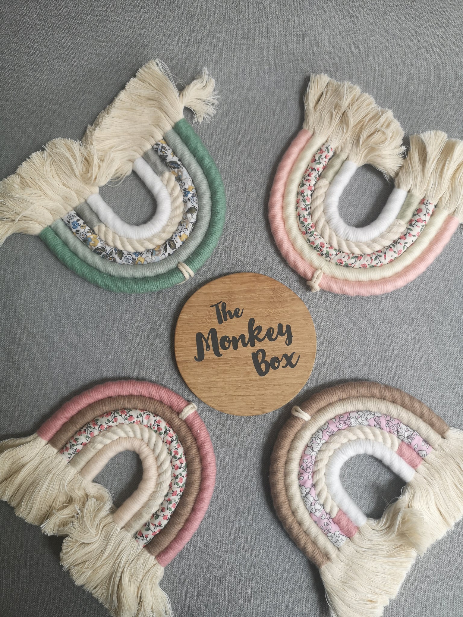 Gorgeous 5 Arch Mini Macramé Rainbow Wall Hanging, Loop for hanging.