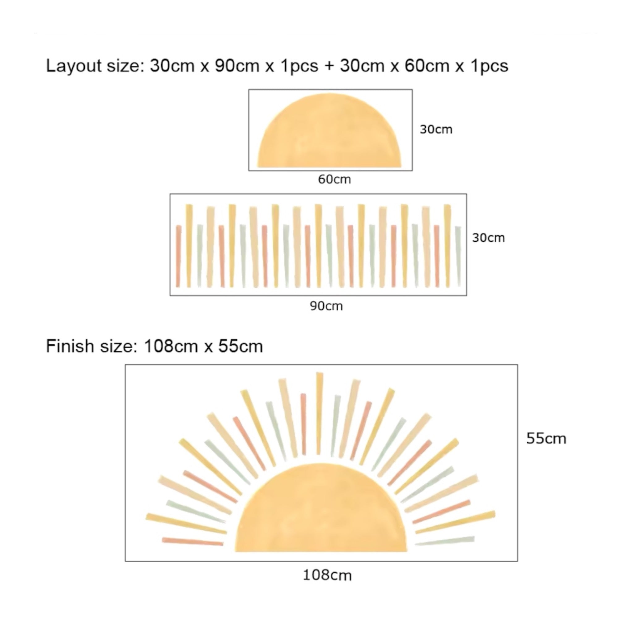 What you will get:- 2 sheets which make up a half sunshine approx 108cm x 55cm