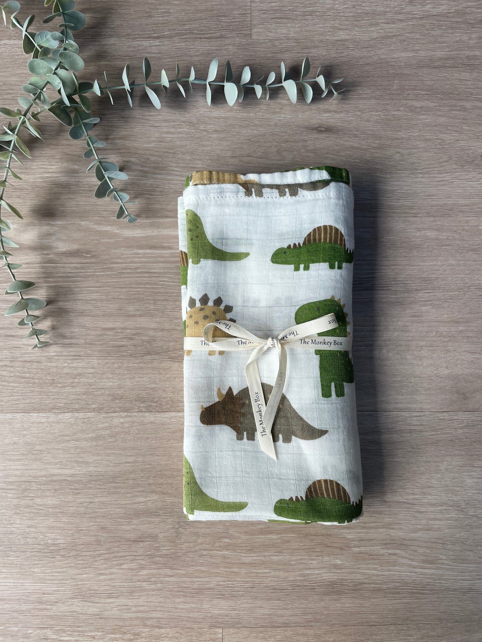 Vibrant Dinosaur Bamboo & Cotton Muslin Swaddle - 120cm x 120cm