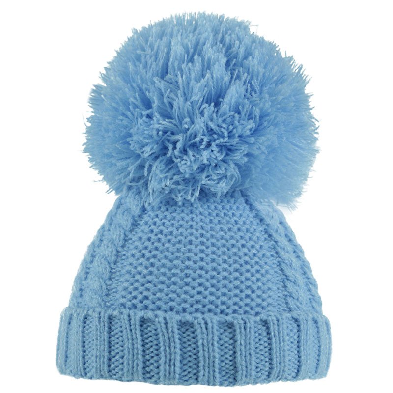 Baby Blue Pearl and Cable Knit Pom Pom Baby Hat