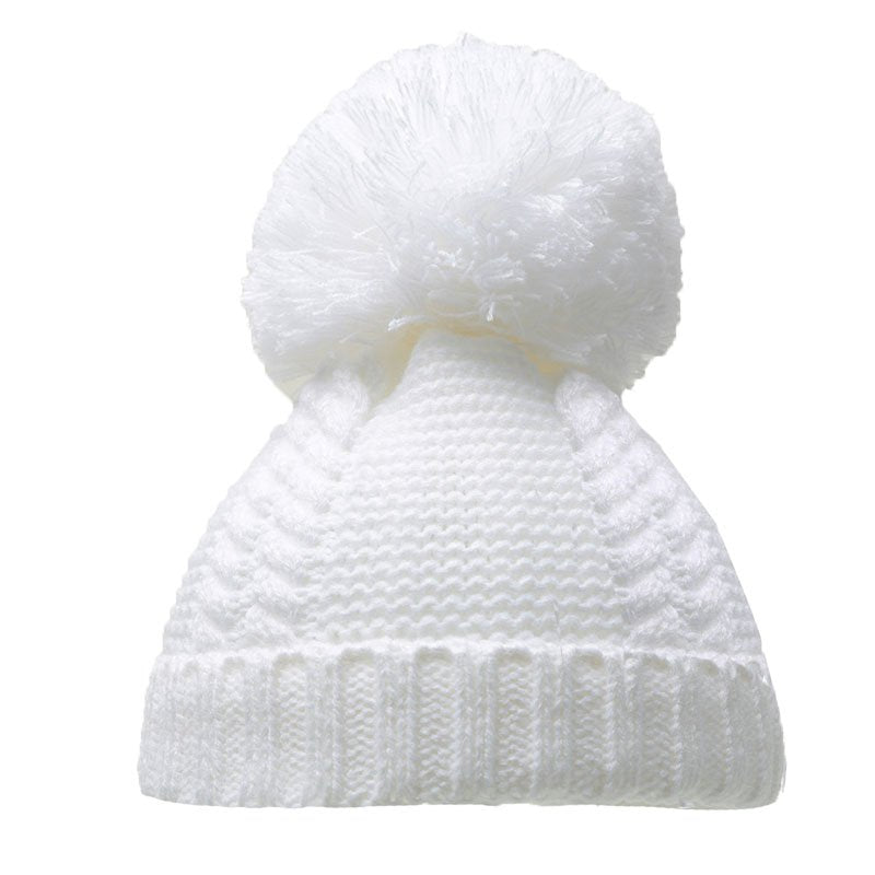 White Pearl and Cable Knit Pom Pom Baby Hat
