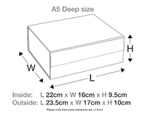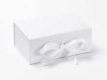 White A5 Deep folding gift box with fixed grosgrain ribbon ties, make the perfect keepsake memory box or presentation gift hamper box.