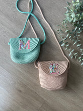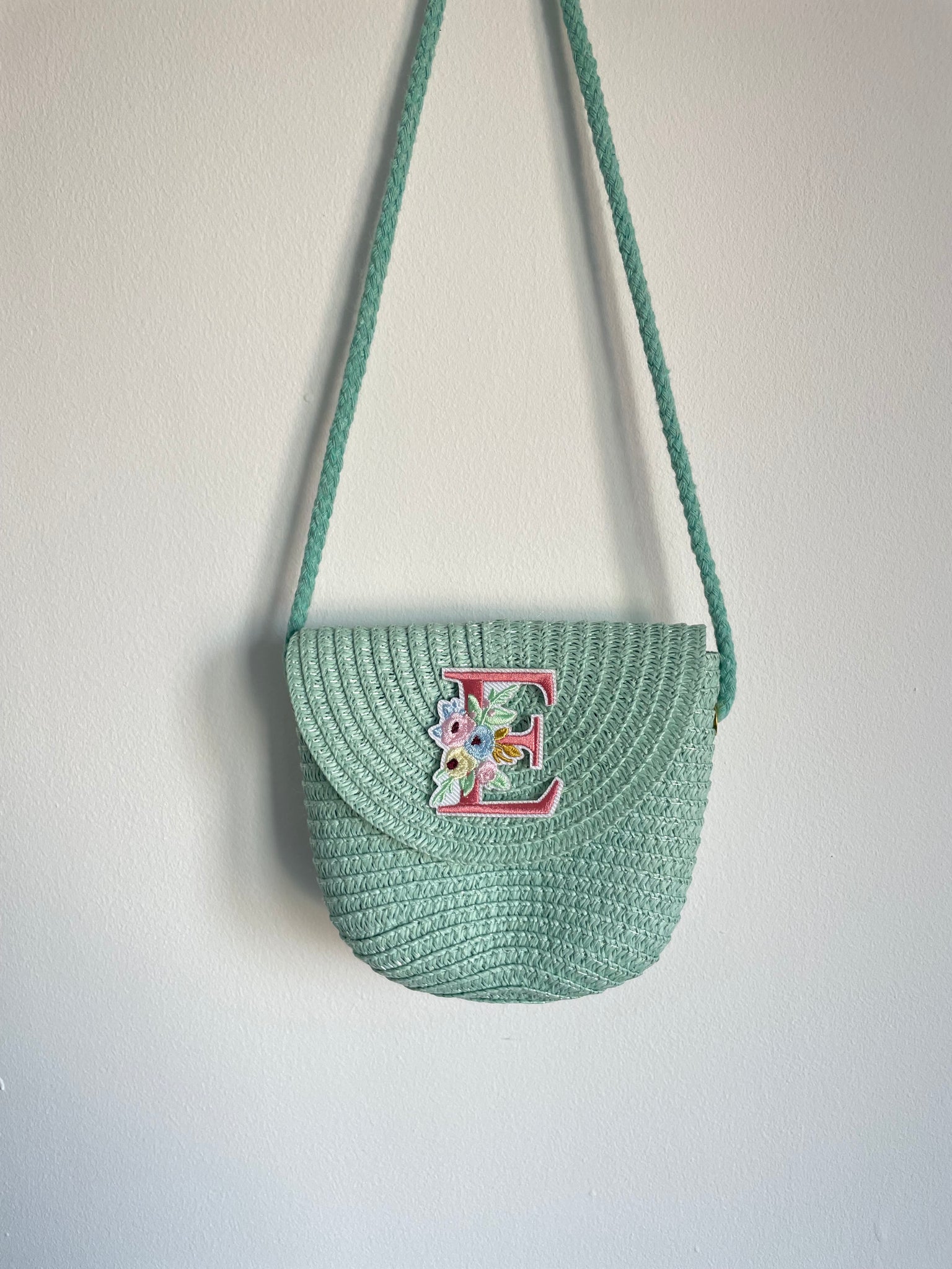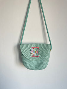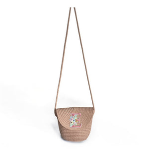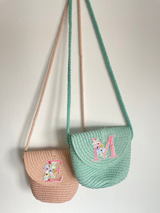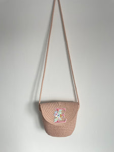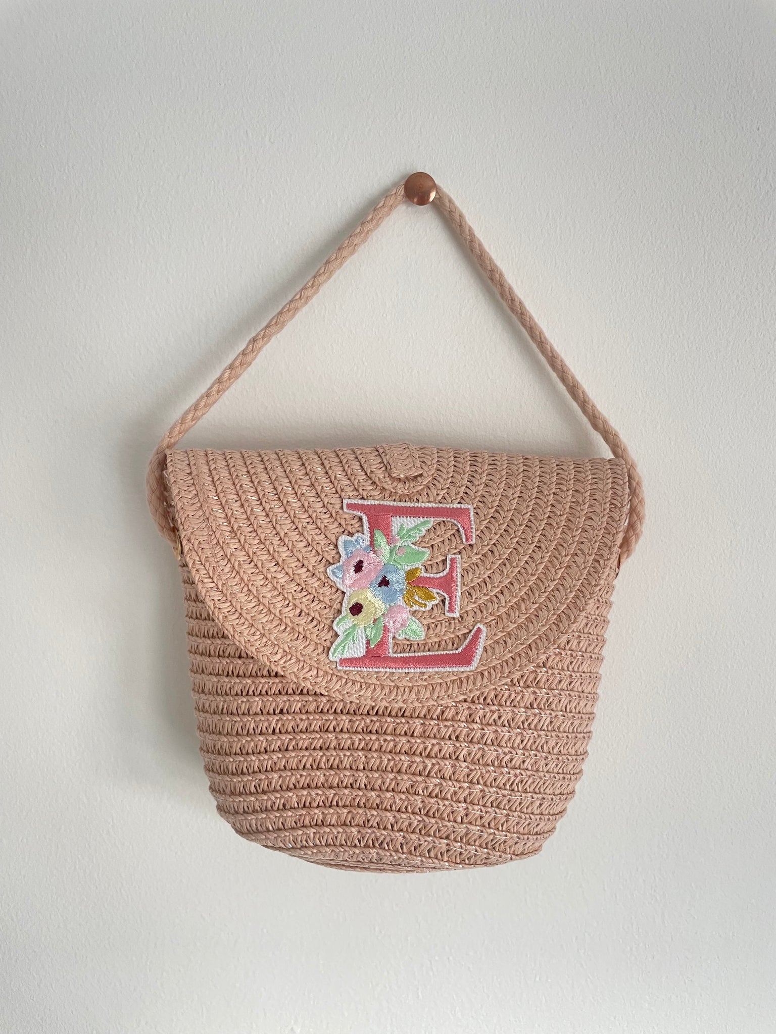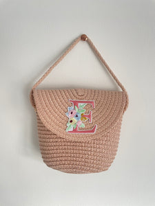 Super cute straw cross the body handbag personalised with a Pink Floral Initial