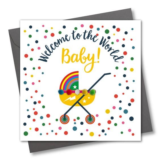 A wonderful contemporary Greeting card. A mix of bright bolds colours, and hand finished with wonderful colourful pompom embellishments. Printed on high quality board from sustainable sources with bright envelope, and each comes in a biodegradable bag.
